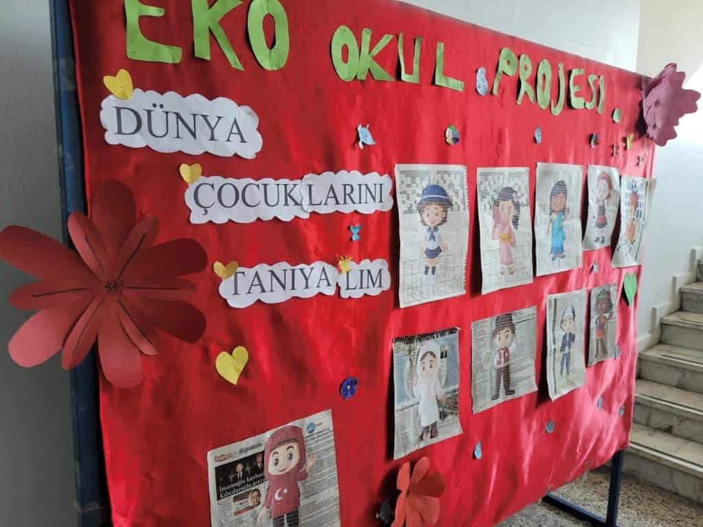Koordinatör Öğretmen Şeyma Yaşar, Eko Tim ve gönüllü öğrenciler tarafından okulumuzda 23 Nisan Ulusal Egemenlik ve Çocuk Bayramı” kutlamaları çerçevesinde atık malzemeler kullanılarak dünya çocuklarının figürlerinin oluşturulması etkinliği düzenlenmiştir. Yapılan figürler okul panosunda sergilenmiştir.